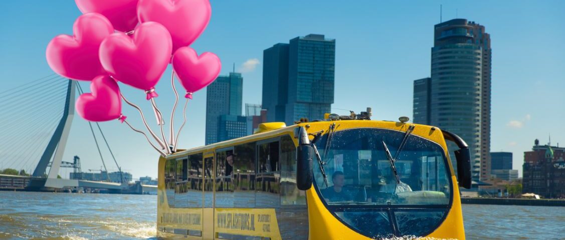 Op zoek naar een originele en verrassende date in Rotterdam? Met Splashtours beleef je samen een unieke ervaring die je niet snel vergeet. Tijdens de stadsrit ontdek je de mooiste en meest bijzondere plekjes van de stad, waarna hét hoogtepunt volgt: de spectaculaire splash in de Maas.